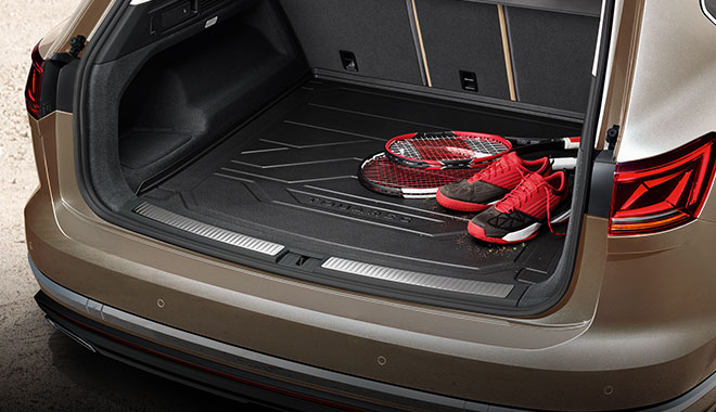 A perfect fit and easy to clean. The durable luggage compartment tray with Touareg lettering protects your luggage area from dirt and moisture.